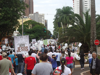 A Marcha para Jesus começou no Estádio Willie Davids, por volta das 9h, e terminou na Praça Deputado Renato Celidônio, ao lado da Prefeitura.