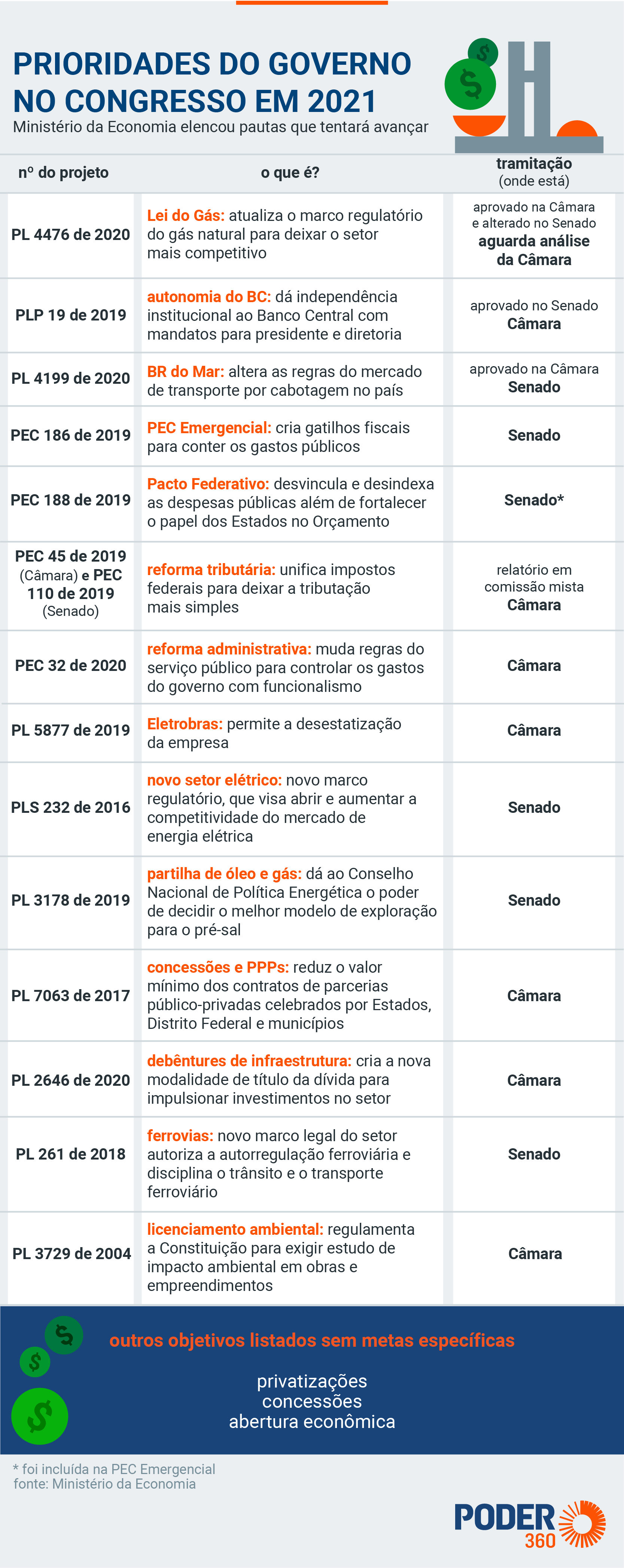 O Ministério da Economia fez uma lista em 29 de dezembro das propostas que espera aprovar este ano. Leia abaixo: