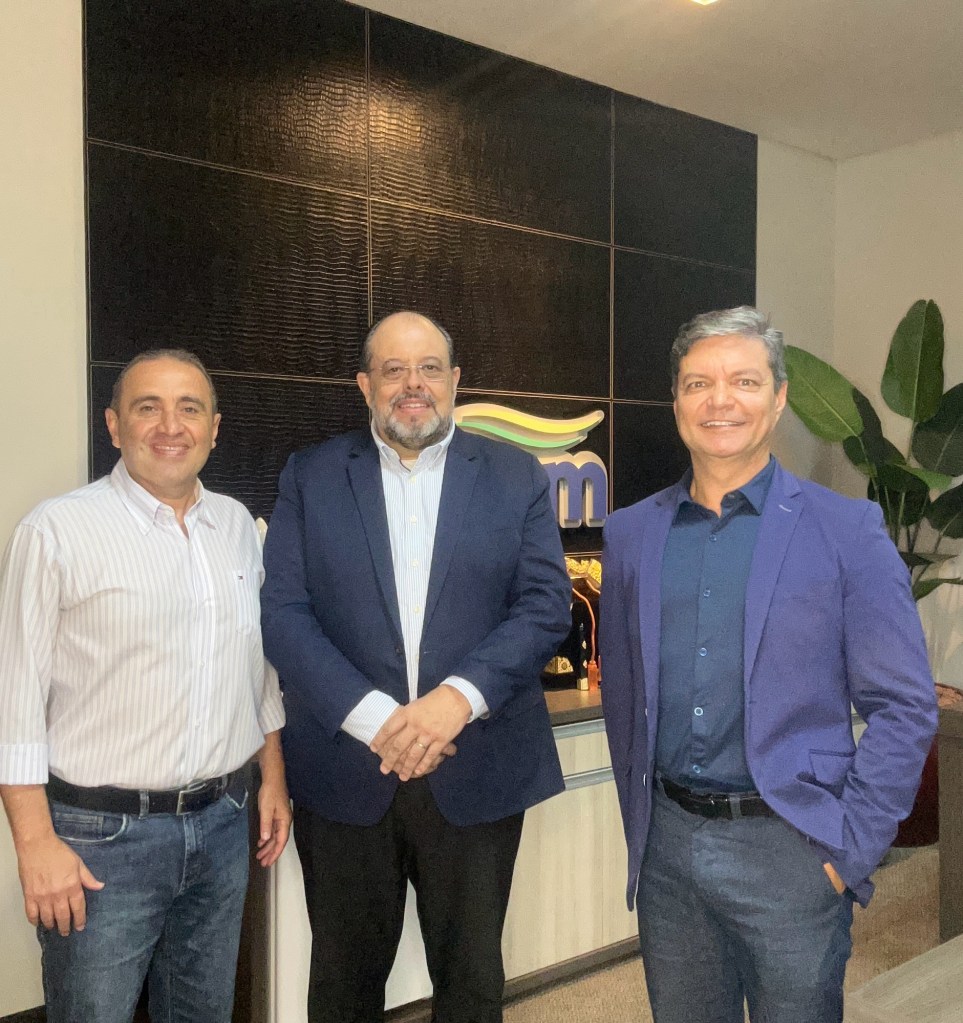 O diretor-presidente da J. Regiani Consultoria, João Regiani (ao centro), esteve nesta sexta-feira (31/01) na Associação Comercial e Empresarial de Maringá (ACIM) para uma reunião estratégica com o presidente da entidade, José Carlos Barbieri (direita), e o presidente do Conselho de Desenvolvimento Econômico de Maringá (CODEM), Mohamad Ali Awada (esquerda).