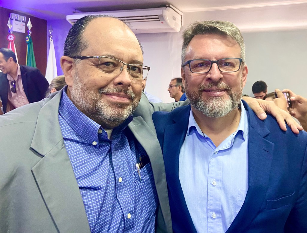 João Regiani, diretor-presidente da J.REGIANI CONSULTORIA. com Wilson Bley Lipsky (dir.), presidente do BRDE, em evento na Expoingá
